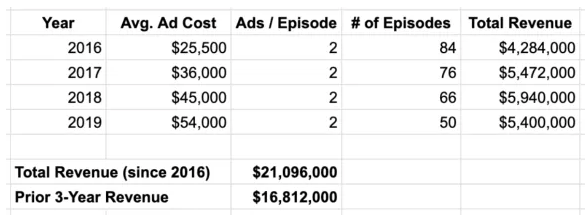 Si bien los ingresos generales de su podcast no superarían a muchas compañías cotizadas en NASDAQ, sus márgenes sí lo harían.